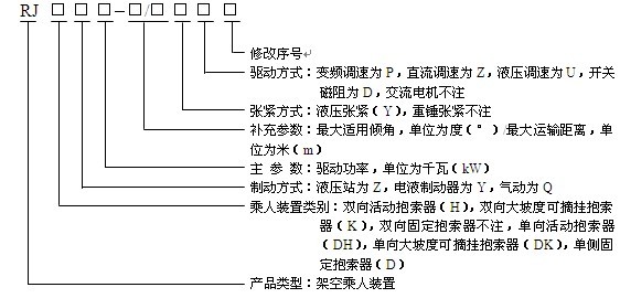 乘人裝置型號表示方法必須符合MT/T154.8-1996、AQ1038-2007的規定。